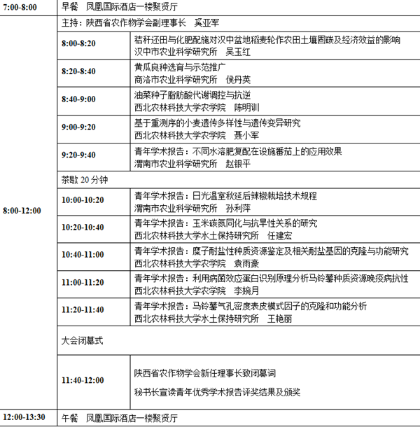 18:30-20:30 晚餐:杨凌示范区凤凰国际酒店一楼聚贤厅
