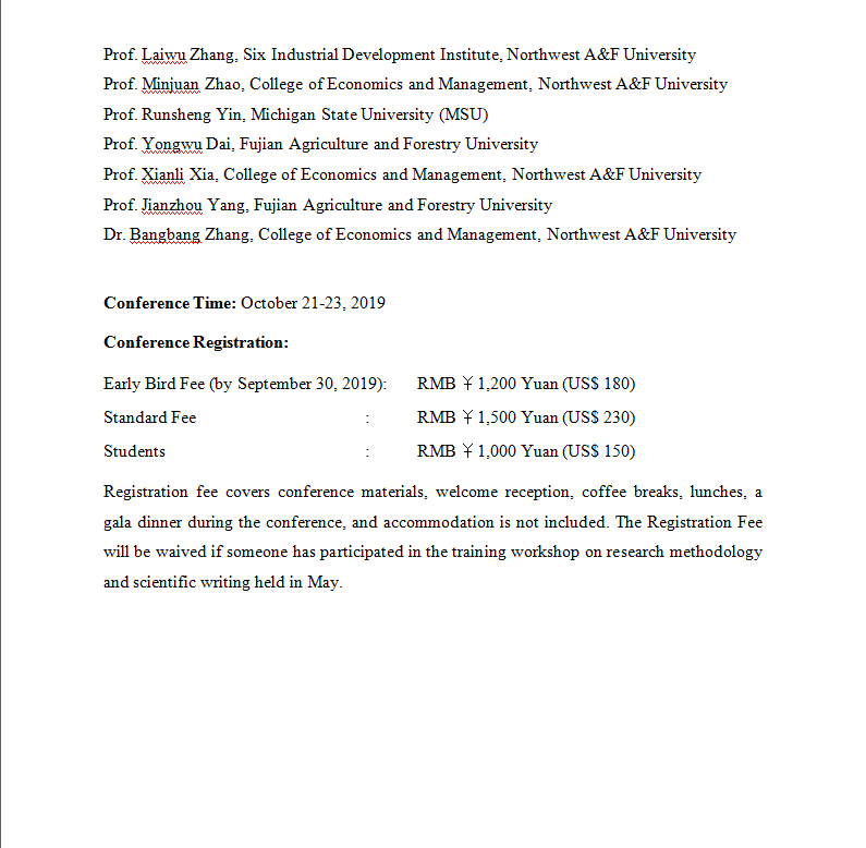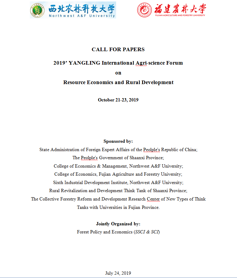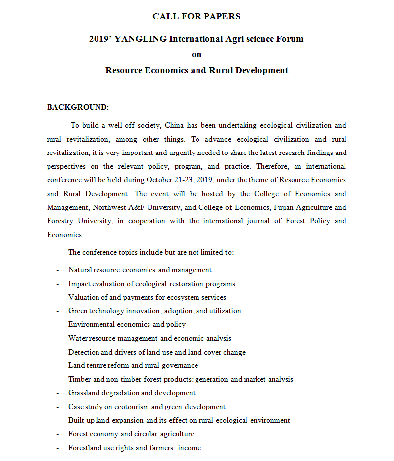 关于举办“2019’ YANGLING International Agri-science Forum on Resource Economics and Rural Development”的通知